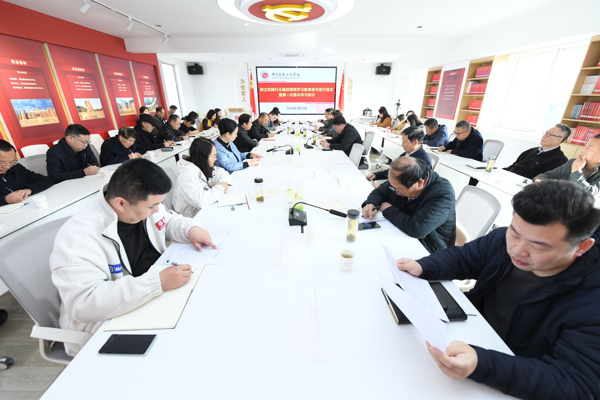 陕服新闻网讯(李文斌)3月31日上午,学校党委在行政楼326会议室召开树立和践行正确政绩观学习教育读书班开班式暨第一次集中学习研讨会,对学校举办树立和践行正确政绩观学习教育读书班进行安排部署,开展第一次集中学习研讨。全体校领导、党委委员、纪委委员、二级学院班子成员、职能部门负责人参加会议。学校党委书记王岗主持会议并讲话。